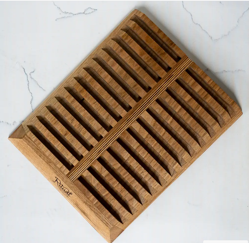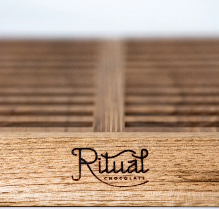These handmade, walnut displays are built to fit two kinds of bars, front facing with 24 total bars being neatly stocked in rows.